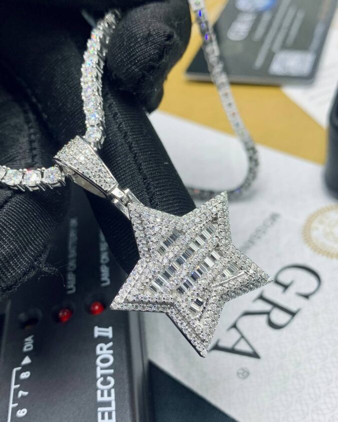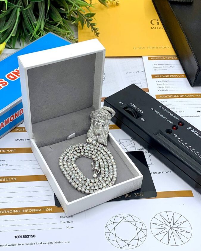 Command attention and exude royalty with this VVS Moissanite Crown Pendant and Tennis Chain—crafted for those who carry themselves like kings and queens.