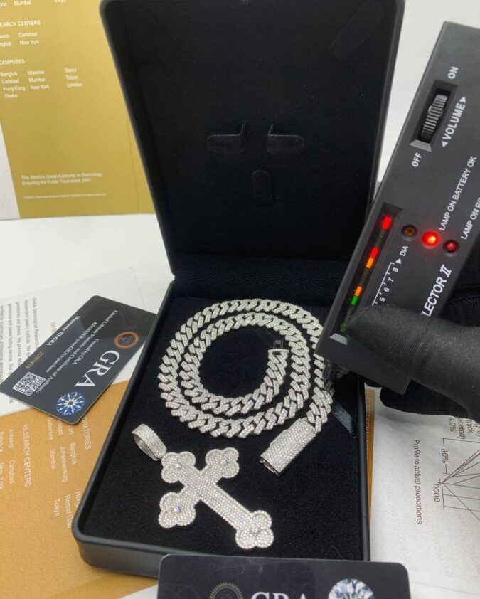 Command attention and embody spiritual elegance with the VVS Moissanite Diamond Cuban Neckchain and Flower Flake Cross Pendant. This bold and refined piece seamlessly merges classic street style with divine symbolism, making it a powerful expression of faith and fashion.