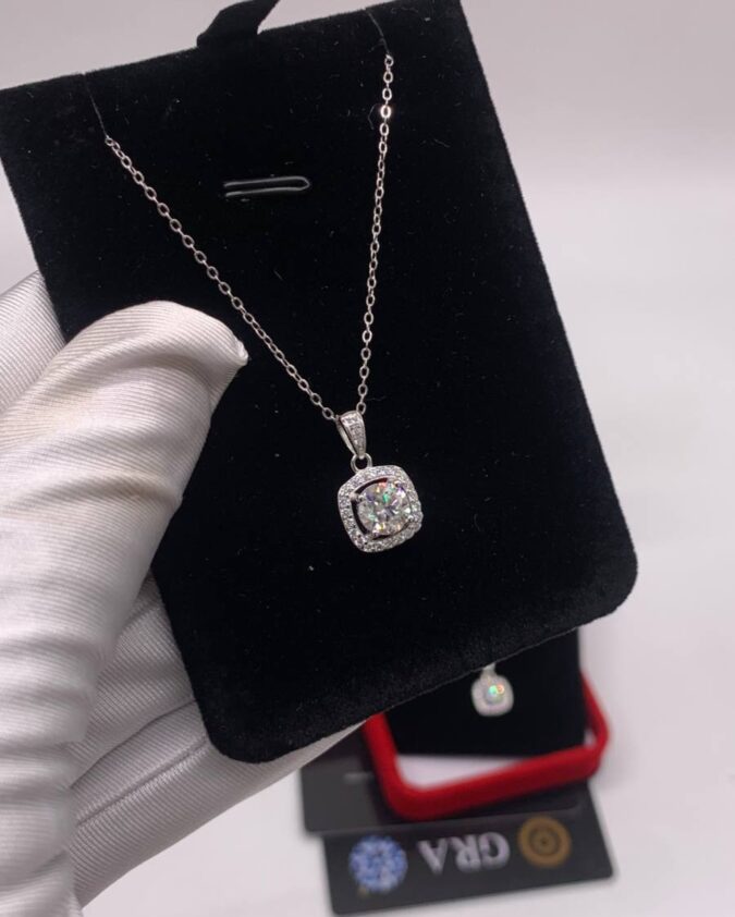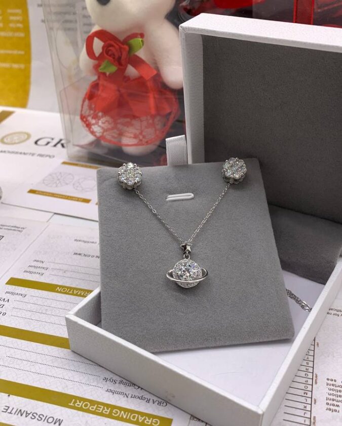 Gift elegance with purpose through this VVS Moissanite Diamond Necklace and Earring Combo. Designed to sparkle with sophistication, this set makes the perfect keepsake for her most cherished moments.