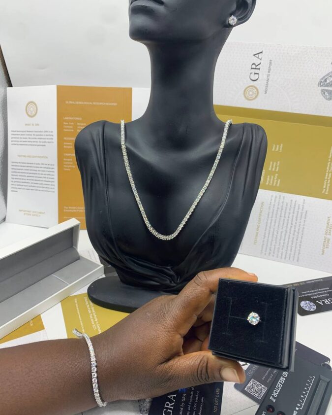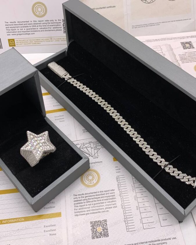 Crafted for those who love coordinated luxury, this combo features a stunning VVS Moissanite necklace paired with a matching diamond ring. It’s a complete look designed to turn heads and express sophistication.